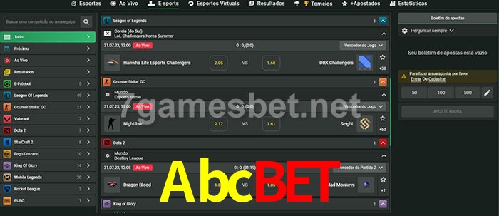 O Abcbet oferece uma grande seleção de opções de apostas em e-sports com probabilidades competitivas
